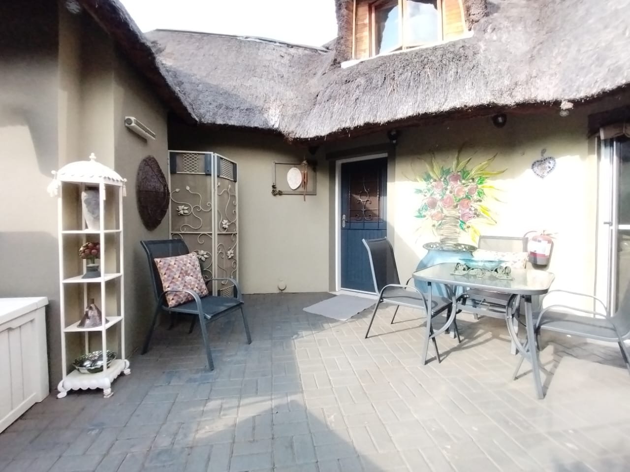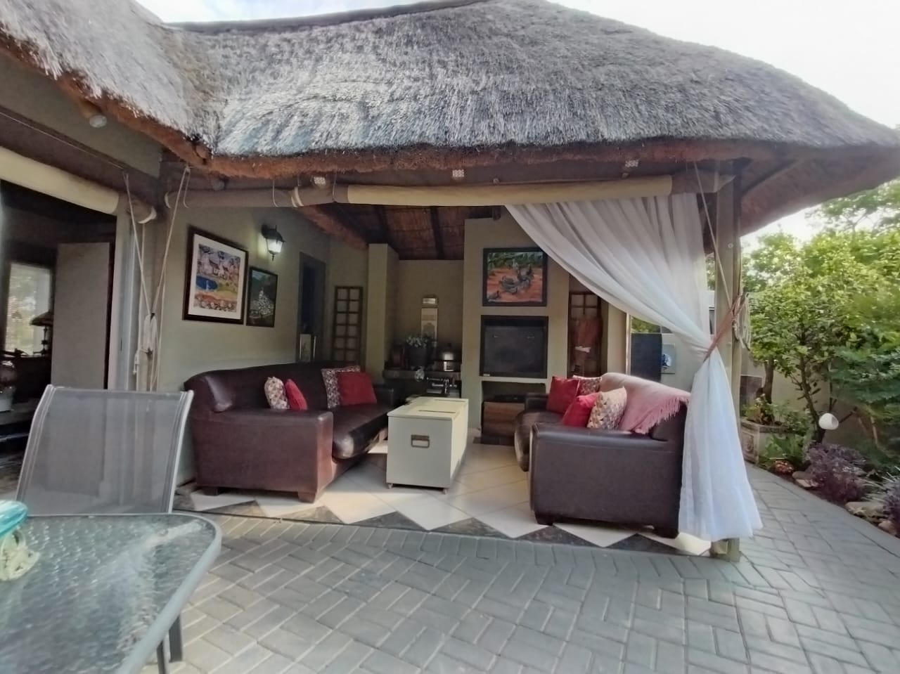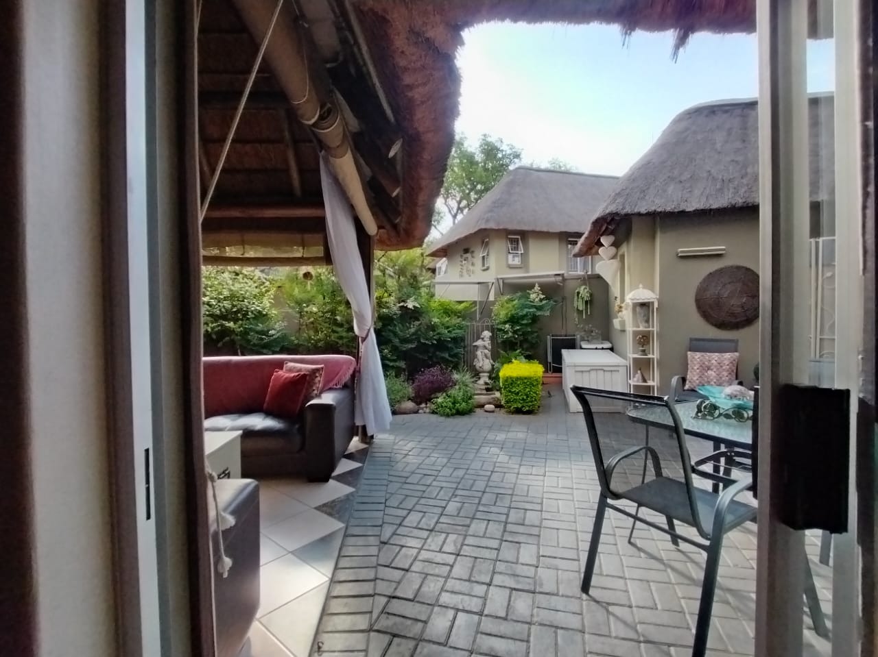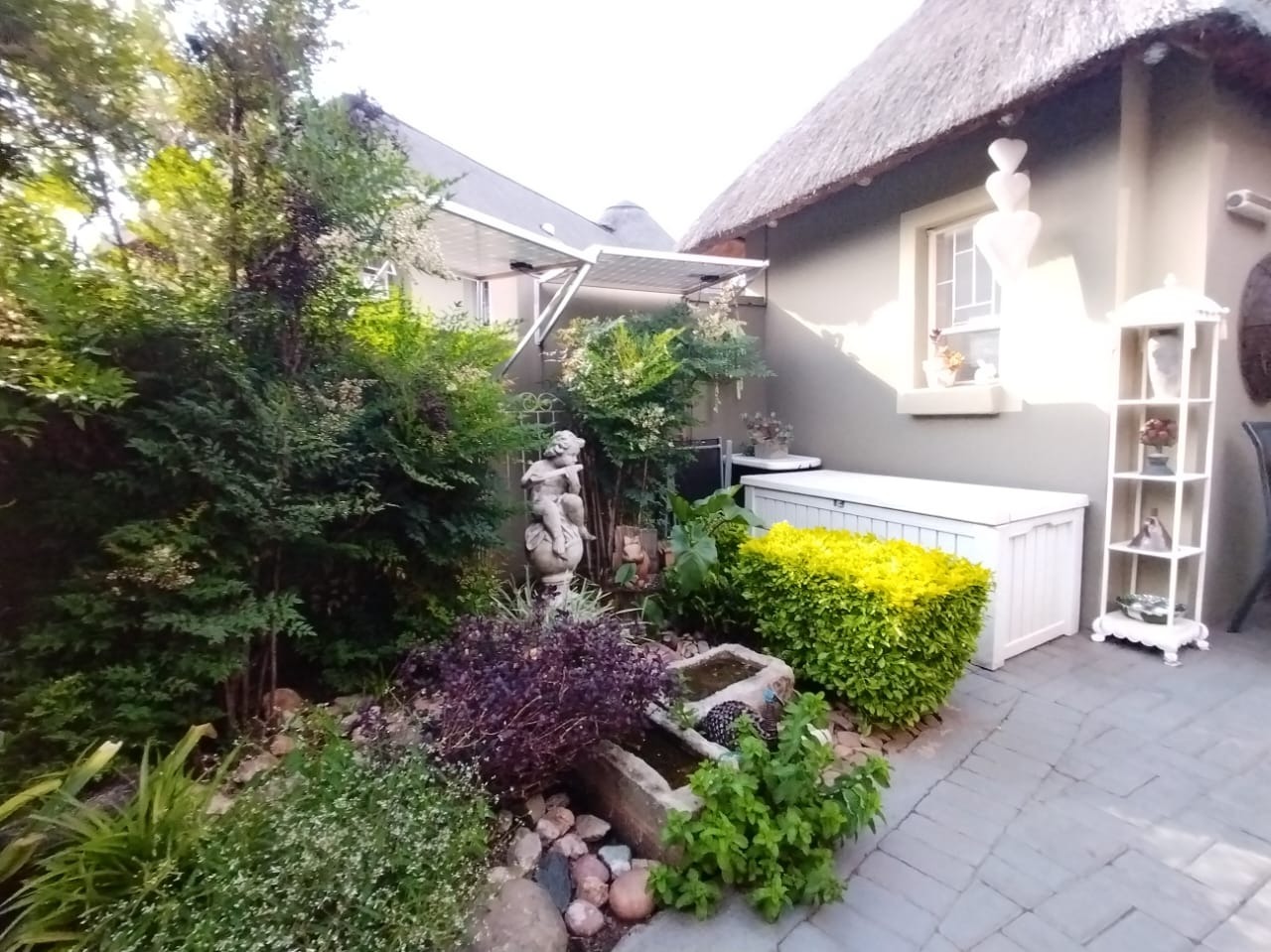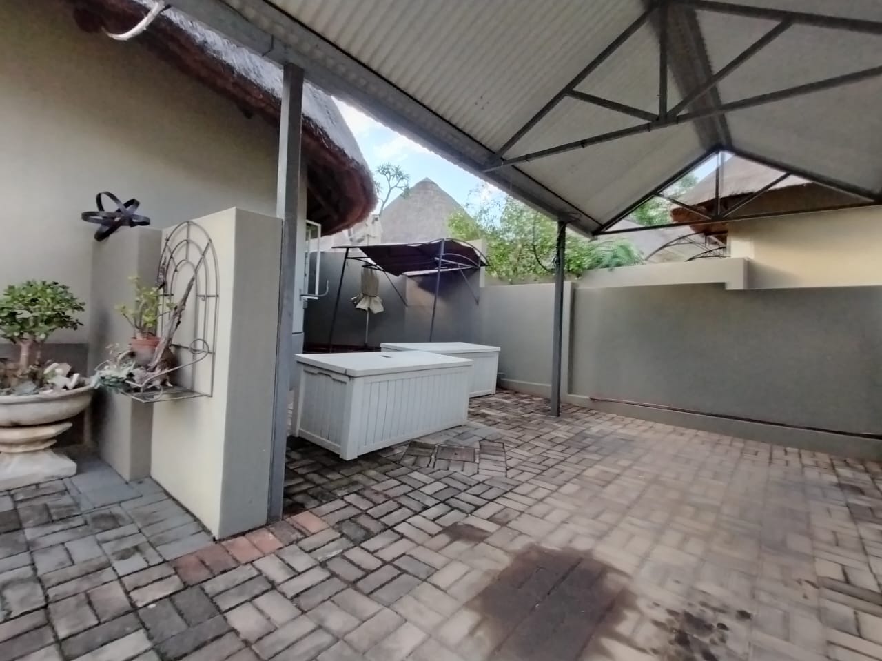 Discover this charming 2-bedroom, 1-bathroom residence nestled within a secure retirement village in Rietfontein AH, Mookgopong. Boasting a distinctive thatch roof and a light green and grey exterior, this home immediately captivates with its unique architectural style. A beautifully landscaped front garden, adorned with a decorative tree and various ornaments, creates an inviting first impression, complemented by a neatly paved driveway. Spanning 73.00 sqm, the interior features a comfortable lounge and a well-appointed kitchen, designed with an open-plan layout for seamless living. A dedicated study offers a quiet space for hobbies or work. The two bedrooms provide tranquil retreats, with one showcasing a high vaulted ceiling. The single bathroom serves as a convenient ensuite, featuring a modern vanity and mirrored medicine cabinet. The property extends its charm outdoors with a lush, well-maintained garden and various paved areas, including a private courtyard and inviting patio spaces perfect for relaxation or entertaining. A lapa and built-in braai enhance outdoor living, while residents also benefit from a communal braai area and a refreshing swimming pool. With 1 parking bay and a driveway, convenience is assured, and pets are welcome. Situated within a gated community and security estate, this home offers peace of mind with 24-hour security, an access gate, and security post. As part of a vibrant retirement village, residents enjoy access to a gym, tennis court, and clubhouse, fostering an active and engaging lifestyle. The property also benefits from a borehole and satellite connectivity. Key Features: * Distinctive Thatch Roof * 2 Bedrooms, 1 Ensuite Bathroom * Dedicated Study * Open-Plan Lounge & Kitchen * Lush Garden with Paved Patio & Courtyard * Lapa & Built-in Braai * Communal Pool, Gym, Tennis Court, Clubhouse * Secure Gated Retirement Village with 24-Hour Security * Borehole & Satellite Connectivity * Pets Allowed