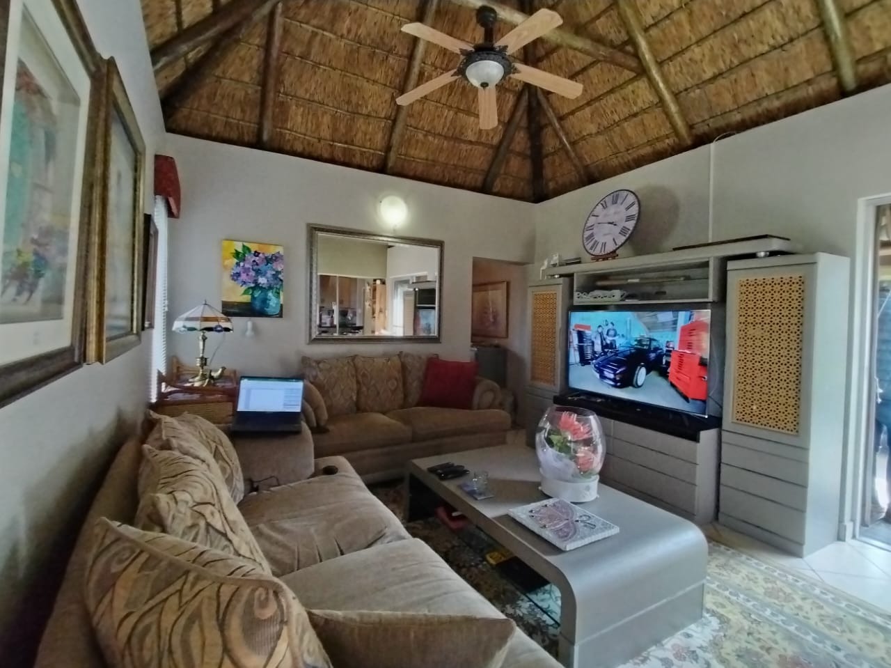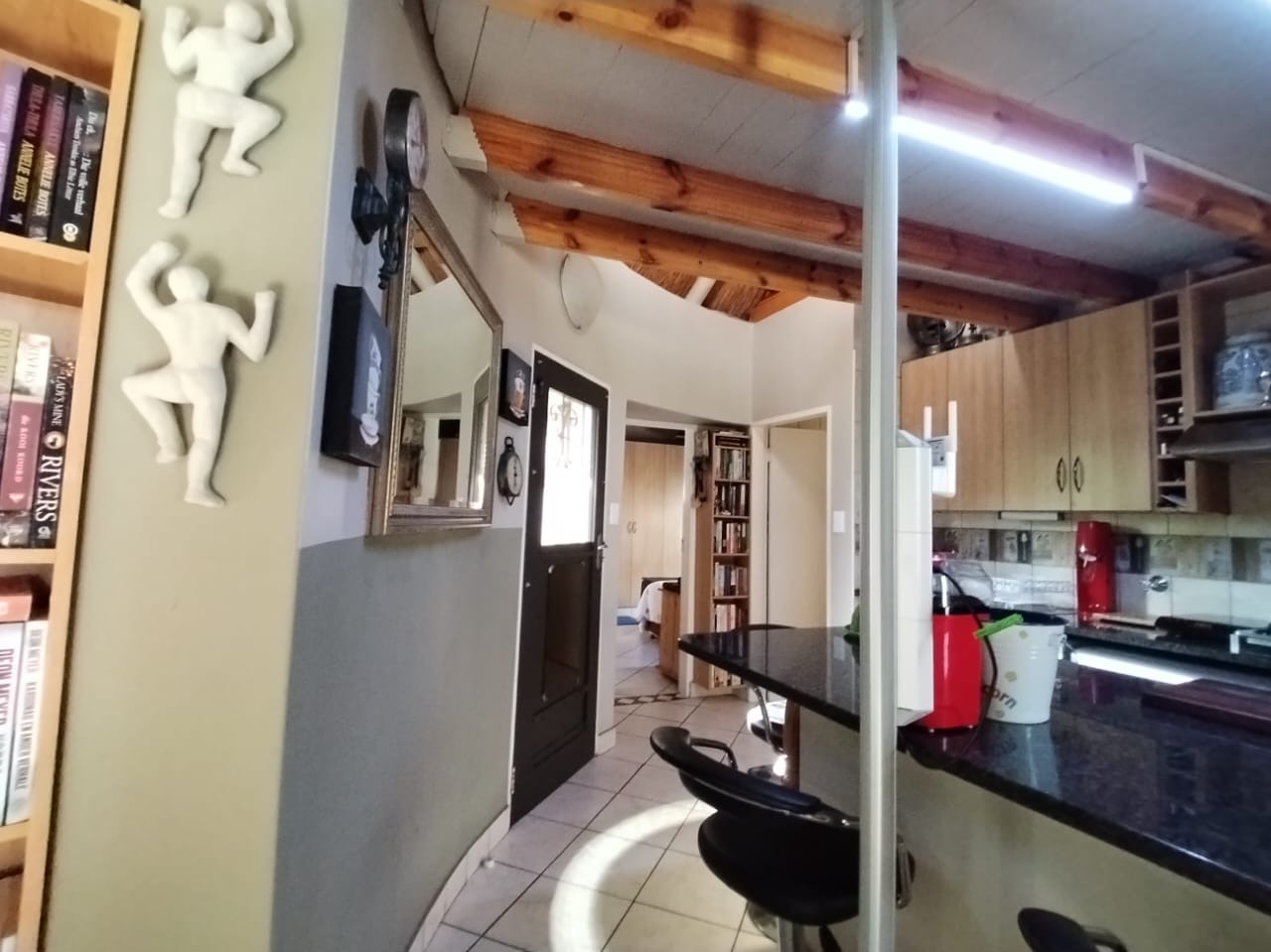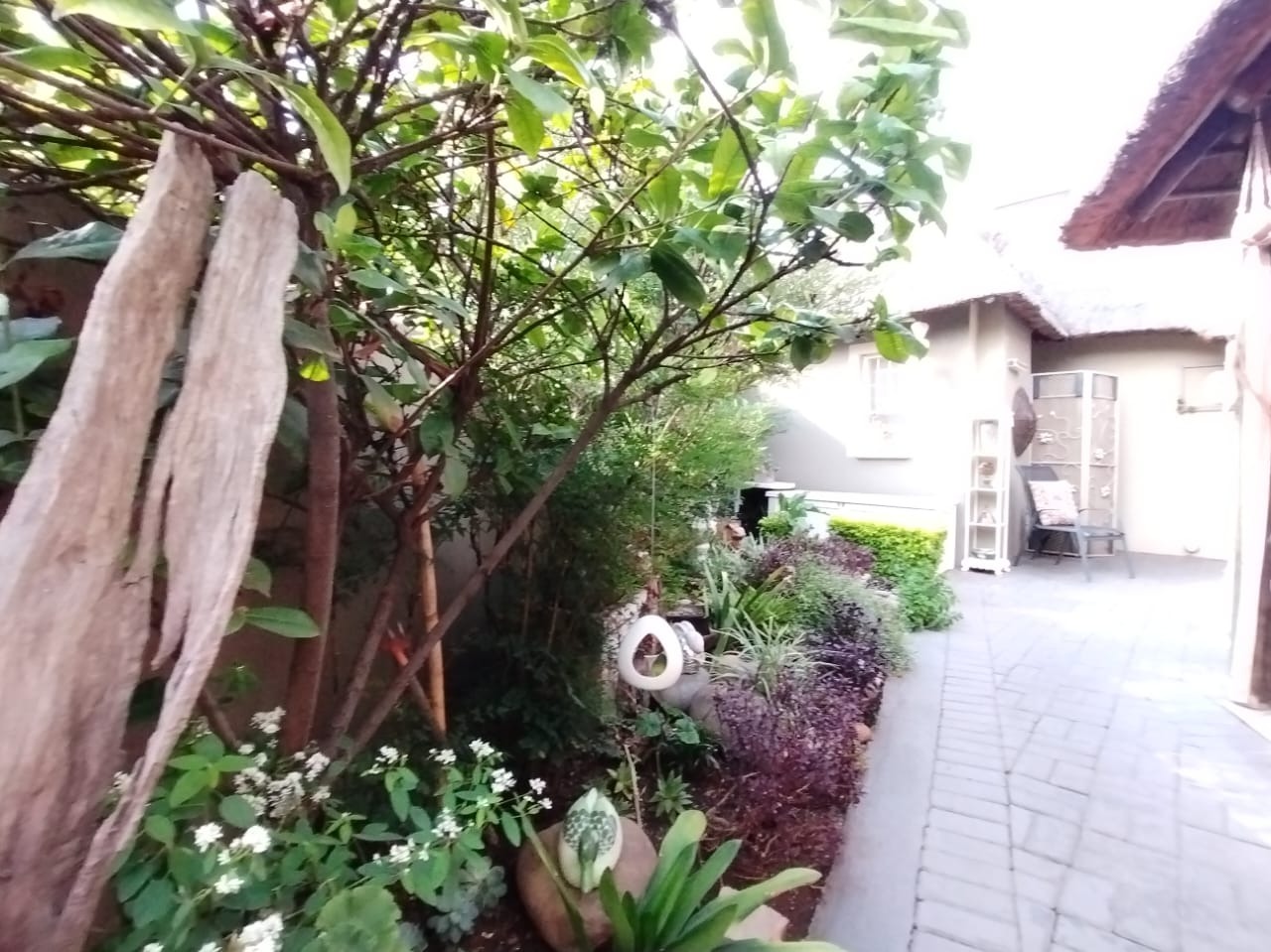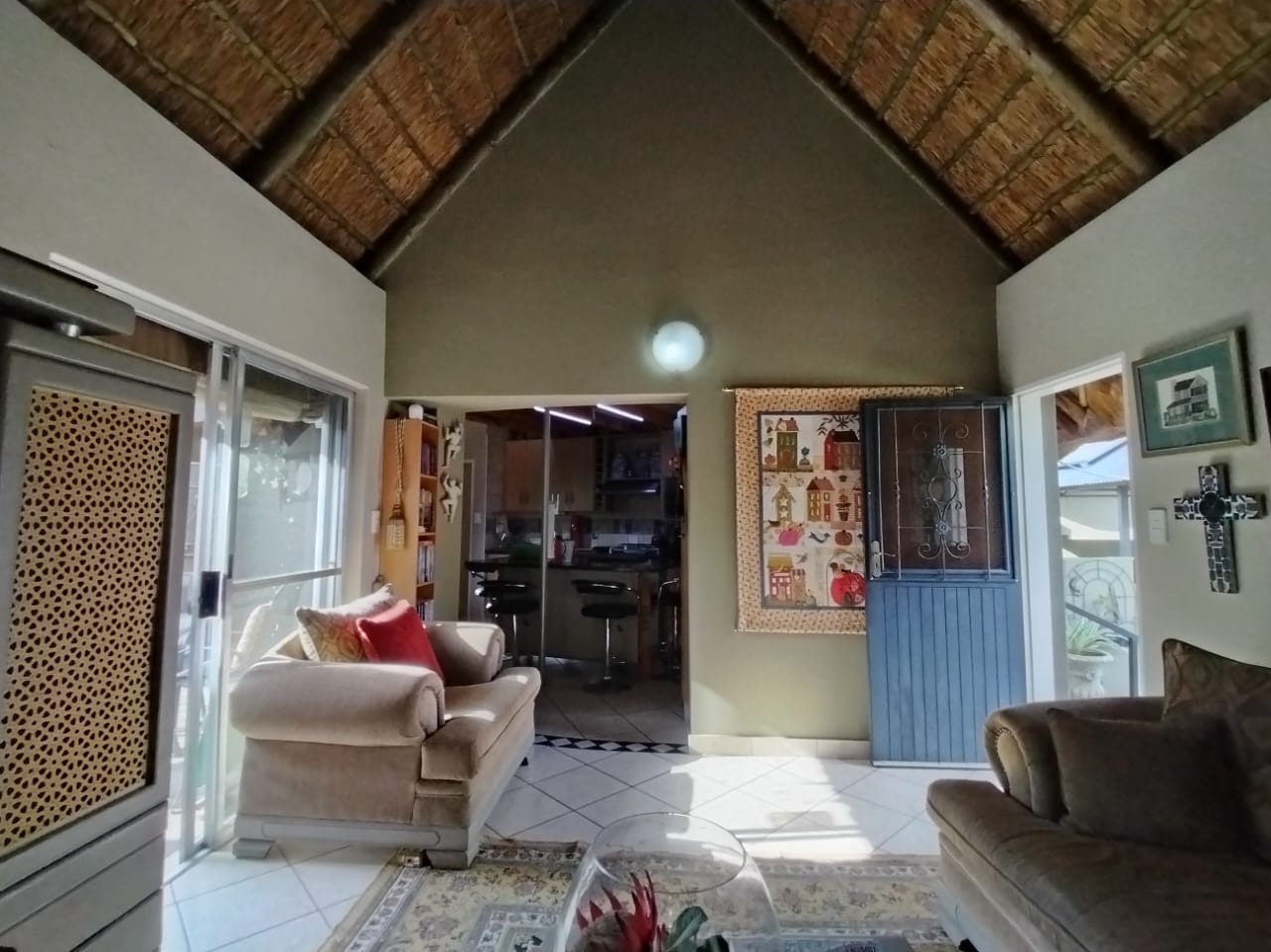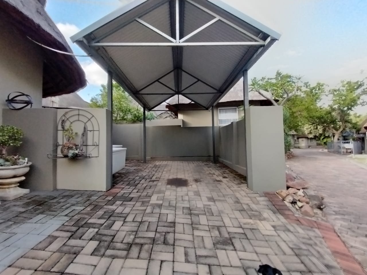 Discover this charming 2-bedroom, 1-bathroom residence nestled within a secure retirement village in Rietfontein AH, Mookgopong. Boasting a distinctive thatch roof and a light green and grey exterior, this home immediately captivates with its unique architectural style. A beautifully landscaped front garden, adorned with a decorative tree and various ornaments, creates an inviting first impression, complemented by a neatly paved driveway. Spanning 73.00 sqm, the interior features a comfortable lounge and a well-appointed kitchen, designed with an open-plan layout for seamless living. A dedicated study offers a quiet space for hobbies or work. The two bedrooms provide tranquil retreats, with one showcasing a high vaulted ceiling. The single bathroom serves as a convenient ensuite, featuring a modern vanity and mirrored medicine cabinet. The property extends its charm outdoors with a lush, well-maintained garden and various paved areas, including a private courtyard and inviting patio spaces perfect for relaxation or entertaining. A lapa and built-in braai enhance outdoor living, while residents also benefit from a communal braai area and a refreshing swimming pool. With 1 parking bay and a driveway, convenience is assured, and pets are welcome. Situated within a gated community and security estate, this home offers peace of mind with 24-hour security, an access gate, and security post. As part of a vibrant retirement village, residents enjoy access to a gym, tennis court, and clubhouse, fostering an active and engaging lifestyle. The property also benefits from a borehole and satellite connectivity. Key Features: * Distinctive Thatch Roof * 2 Bedrooms, 1 Ensuite Bathroom * Dedicated Study * Open-Plan Lounge & Kitchen * Lush Garden with Paved Patio & Courtyard * Lapa & Built-in Braai * Communal Pool, Gym, Tennis Court, Clubhouse * Secure Gated Retirement Village with 24-Hour Security * Borehole & Satellite Connectivity * Pets Allowed
