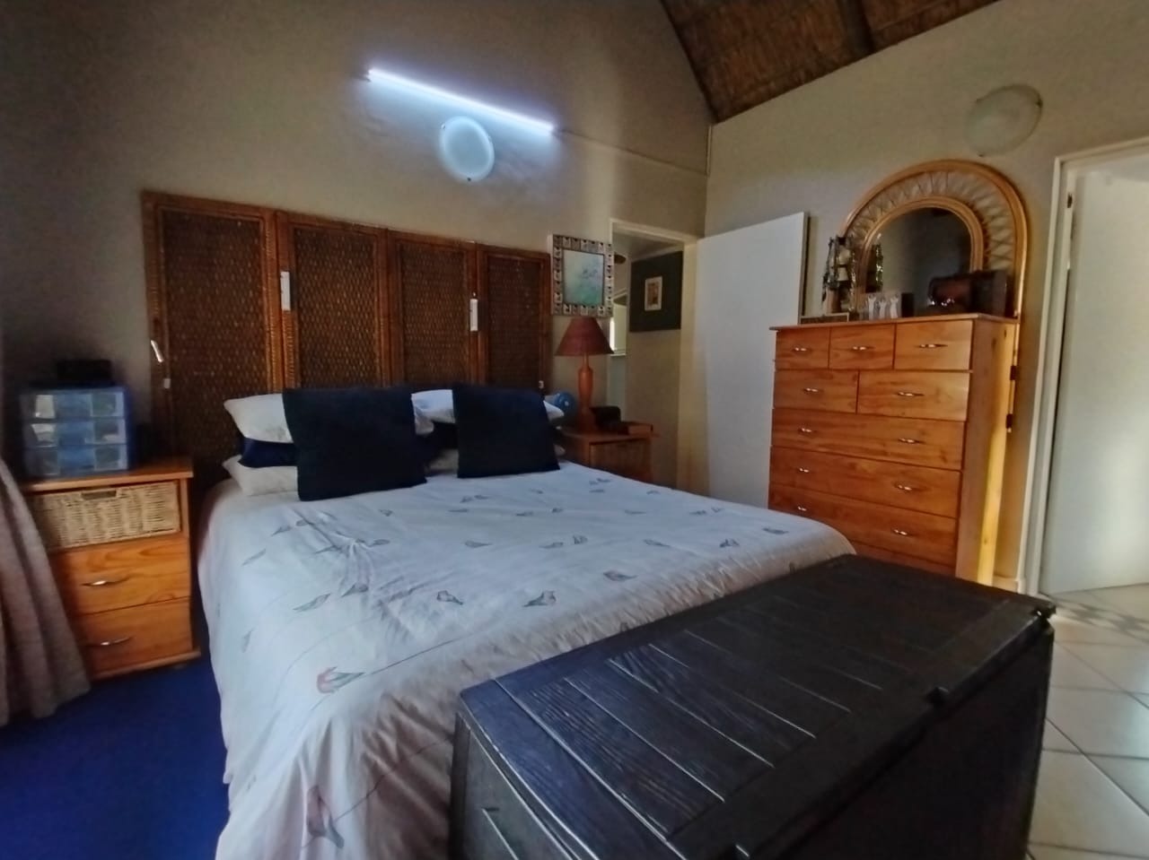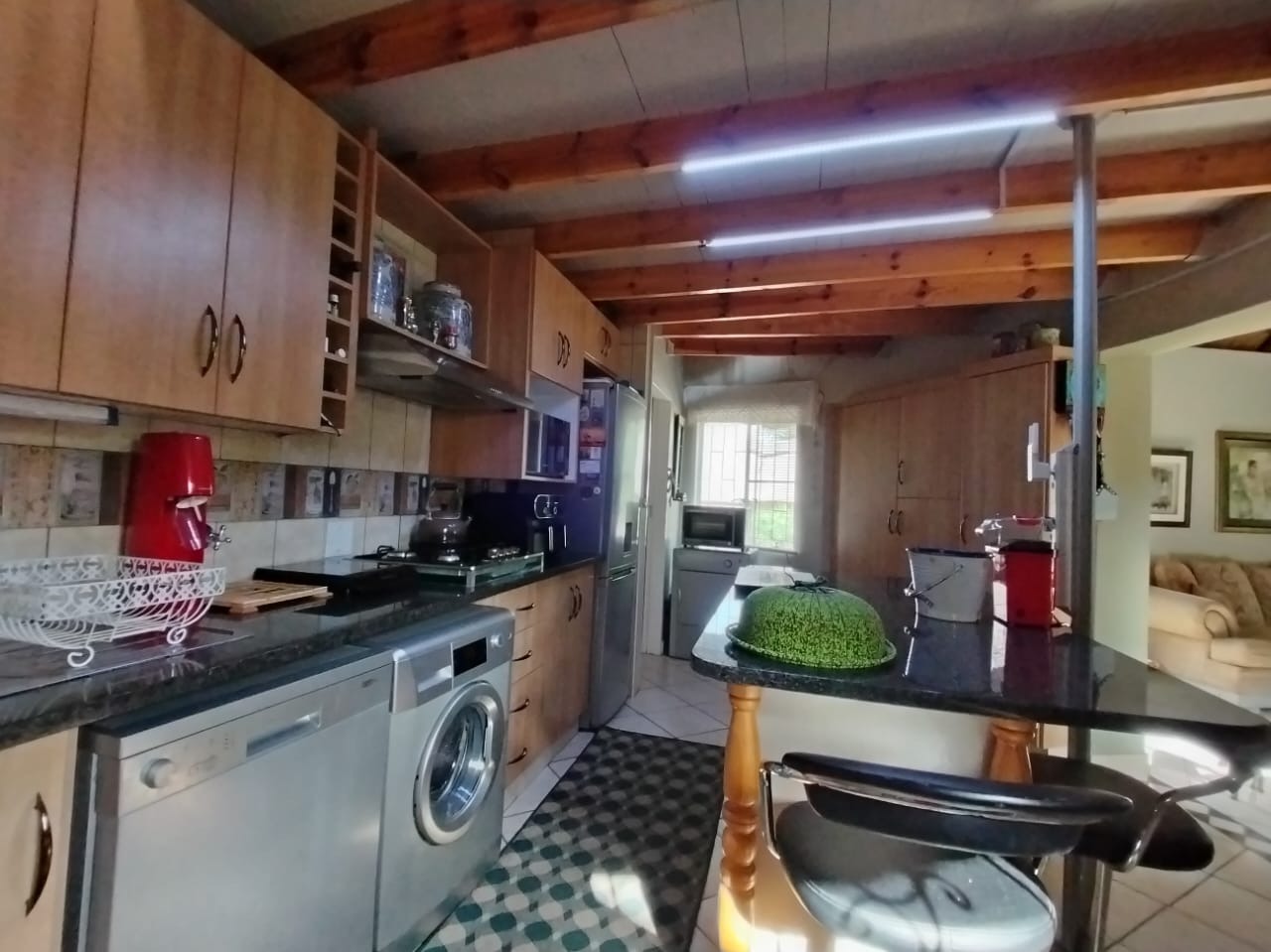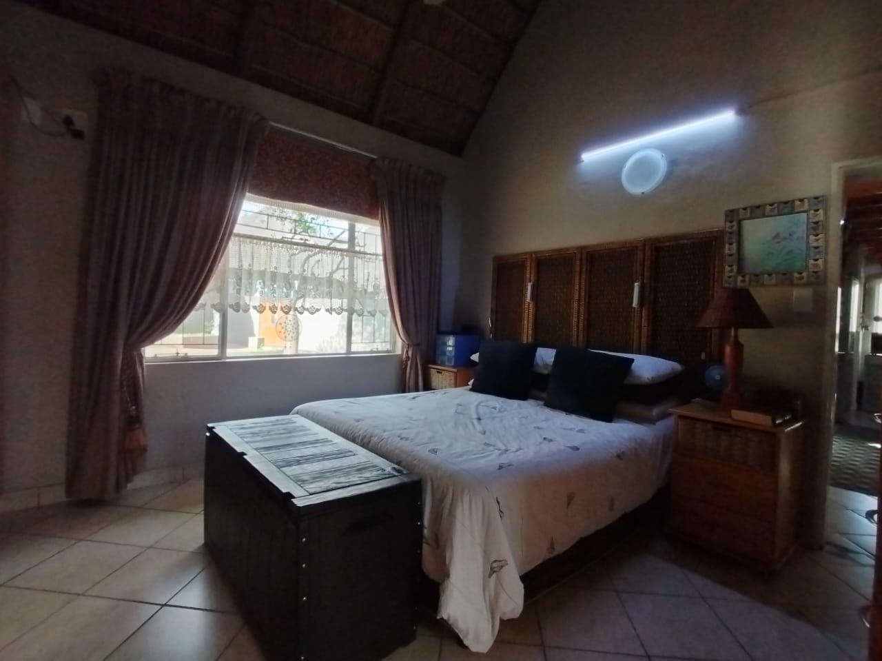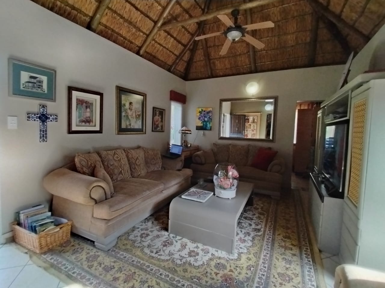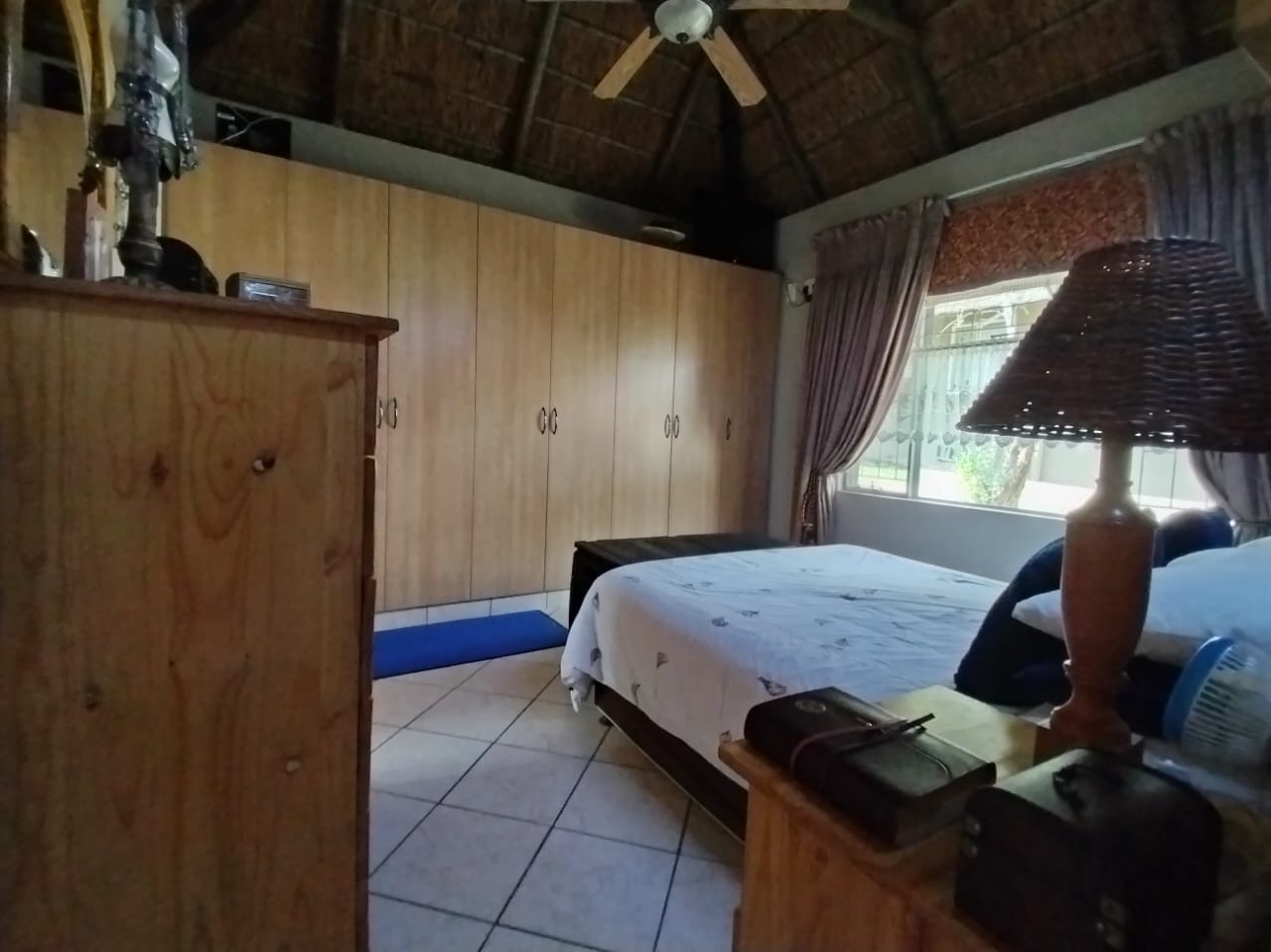 Discover this charming 2-bedroom, 1-bathroom residence nestled within a secure retirement village in Rietfontein AH, Mookgopong. Boasting a distinctive thatch roof and a light green and grey exterior, this home immediately captivates with its unique architectural style. A beautifully landscaped front garden, adorned with a decorative tree and various ornaments, creates an inviting first impression, complemented by a neatly paved driveway. Spanning 73.00 sqm, the interior features a comfortable lounge and a well-appointed kitchen, designed with an open-plan layout for seamless living. A dedicated study offers a quiet space for hobbies or work. The two bedrooms provide tranquil retreats, with one showcasing a high vaulted ceiling. The single bathroom serves as a convenient ensuite, featuring a modern vanity and mirrored medicine cabinet. The property extends its charm outdoors with a lush, well-maintained garden and various paved areas, including a private courtyard and inviting patio spaces perfect for relaxation or entertaining. A lapa and built-in braai enhance outdoor living, while residents also benefit from a communal braai area and a refreshing swimming pool. With 1 parking bay and a driveway, convenience is assured, and pets are welcome. Situated within a gated community and security estate, this home offers peace of mind with 24-hour security, an access gate, and security post. As part of a vibrant retirement village, residents enjoy access to a gym, tennis court, and clubhouse, fostering an active and engaging lifestyle. The property also benefits from a borehole and satellite connectivity. Key Features: * Distinctive Thatch Roof * 2 Bedrooms, 1 Ensuite Bathroom * Dedicated Study * Open-Plan Lounge & Kitchen * Lush Garden with Paved Patio & Courtyard * Lapa & Built-in Braai * Communal Pool, Gym, Tennis Court, Clubhouse * Secure Gated Retirement Village with 24-Hour Security * Borehole & Satellite Connectivity * Pets Allowed