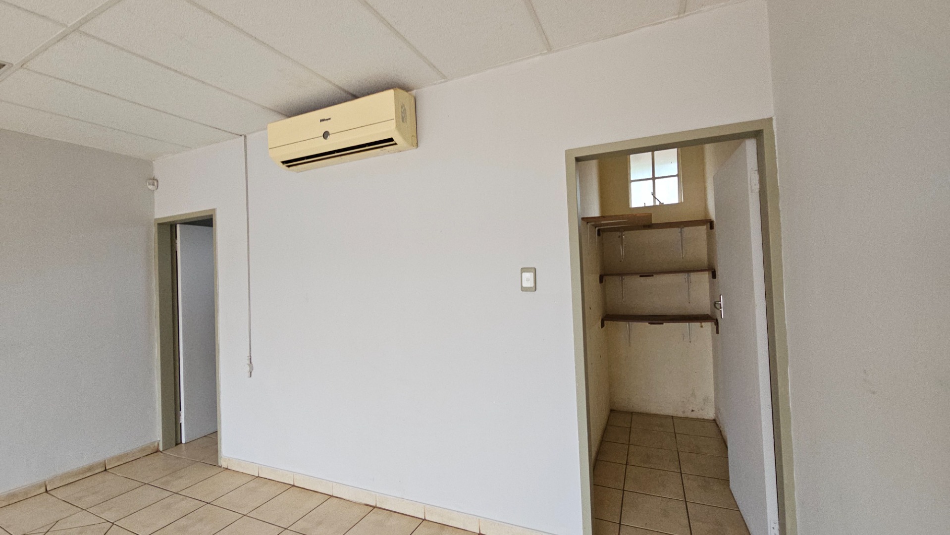 This adaptable 42 square metre commercial rental space is ideally situated in Mookgopong Rural, Mookgopong, South Africa, offering a practical solution for various business needs. The property features a predominantly open-plan layout, providing flexibility for customisation to suit your specific operational requirements. Tiled flooring throughout ensures durability and ease of maintenance, while a drop ceiling with fluorescent lighting provides consistent illumination. Multiple doorways within the unit suggest the potential for segmented areas or private offices, allowing for efficient space planning. The versatile nature of this commercial unit makes it suitable for a range of businesses, from a professional office or consulting room to a small retail outlet or service-based operation. The space benefits from existing air conditioning units, ensuring a comfortable working environment. Additionally, a dedicated area with built-in shelving offers convenient storage solutions, and a utility area equipped with a sink and counter provides practical facilities for staff or clients. While the space presents a functional foundation, some areas show signs of wear, offering an opportunity for a tenant to refresh and personalise the interior to align with their brand. Essential amenities include a basic toilet facility within the unit, enhancing convenience for both employees and visitors. Natural light streams in through windows, some fitted with security bars, contributing to a bright atmosphere. The property's design prioritises functionality, making it a straightforward choice for businesses seeking an accessible and manageable commercial footprint. Mookgopong Rural offers a tranquil yet accessible location within the broader Mookgopong area. This setting provides a balance of community feel and practical access for local businesses and their clientele. Key Features: * 42 sqm Floor Size * Flexible Open-Plan Layout * Durable Tiled Flooring * Air Conditioning Units * Built-in Shelving/Storage * Utility Sink Area * Basic Toilet Facility * Natural Light with Security Bars